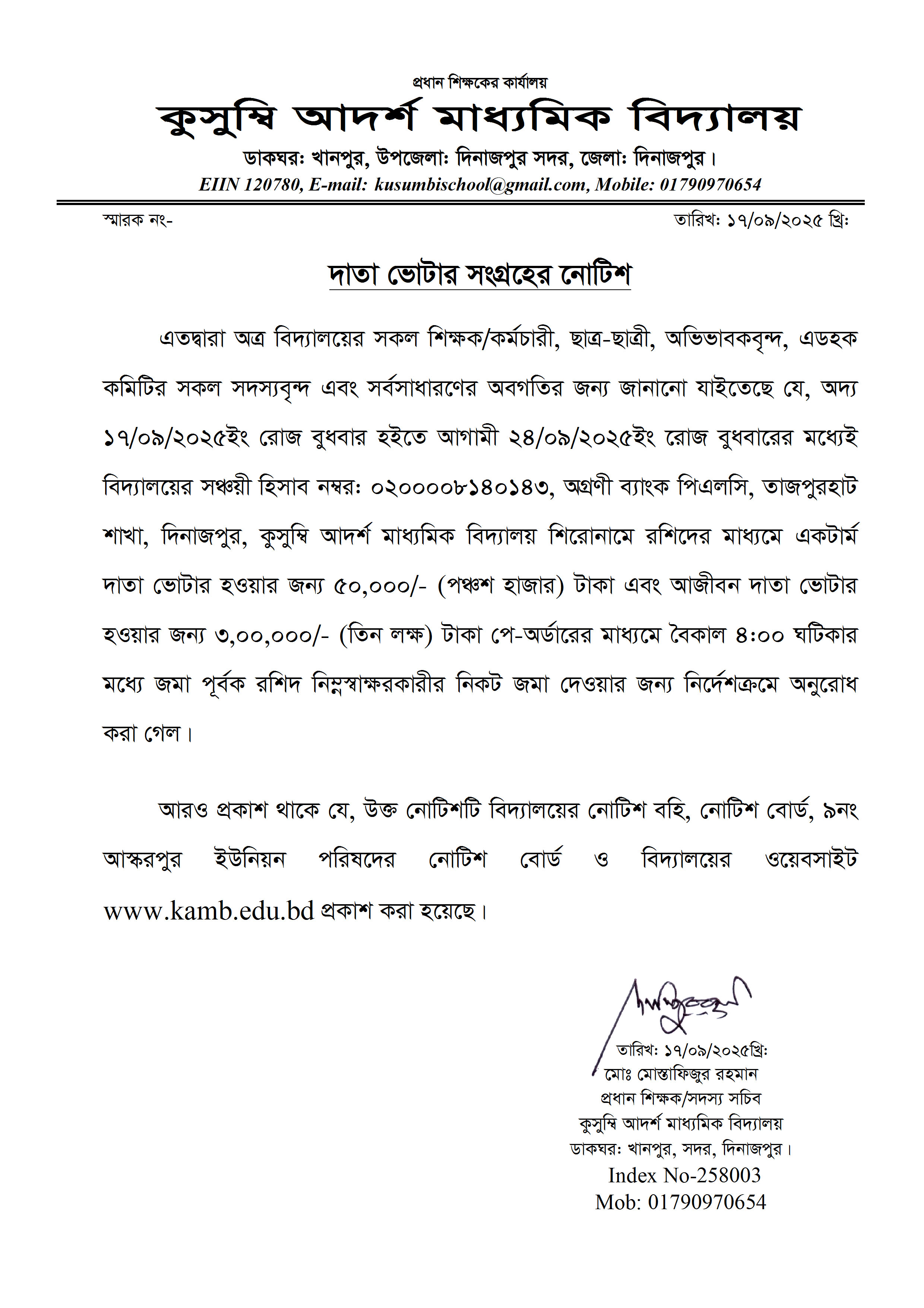 দাতা ভোটার সংগ্রহের নোটিশ-১৭-০৯-২৫